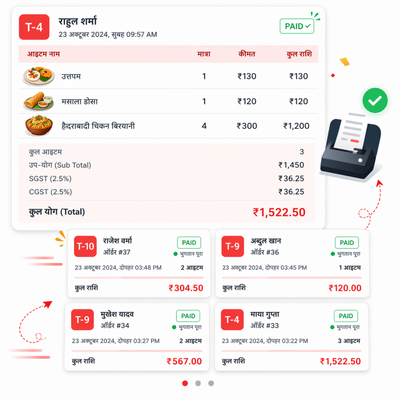 Streamline your restaurant operations with a fast, intuitive, and fully integrated POS system designed for modern food businesses. From order taking to final billing, manage everything seamlessly in one unified platform. Enable quick order processing, real-time billing, and multi-payment support including UPI, cards, and cash—all while maintaining accuracy and speed during peak hours. With intelligent features like live order tracking, GST-ready invoices, and automated calculations, your team can focus more on service and less on manual tasks.