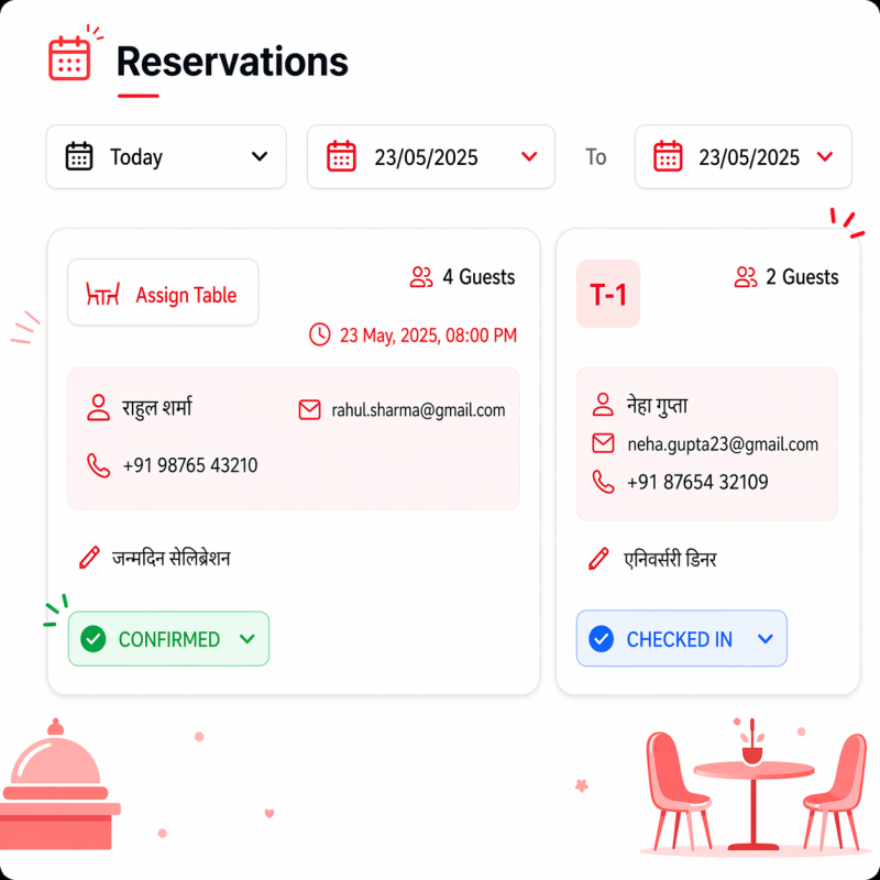 Transform the way your restaurant manages seating with an intelligent, real-time table reservation solution. Seamlessly handle bookings, reduce wait times, and optimize table utilization—all from a single dashboard. Enable customers to reserve tables in advance, manage walk-ins efficiently, and maintain a smooth dining flow even during peak hours. With automated scheduling, live table status, and queue management, your team stays proactive while delivering a premium customer experience.